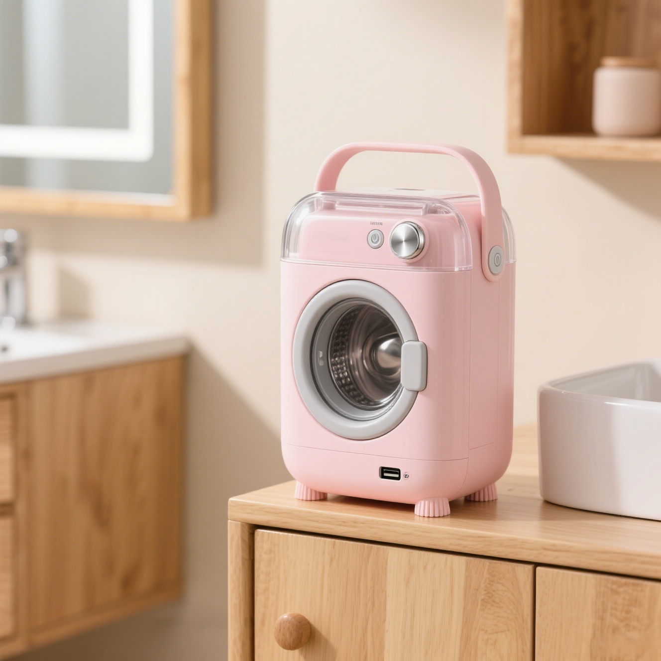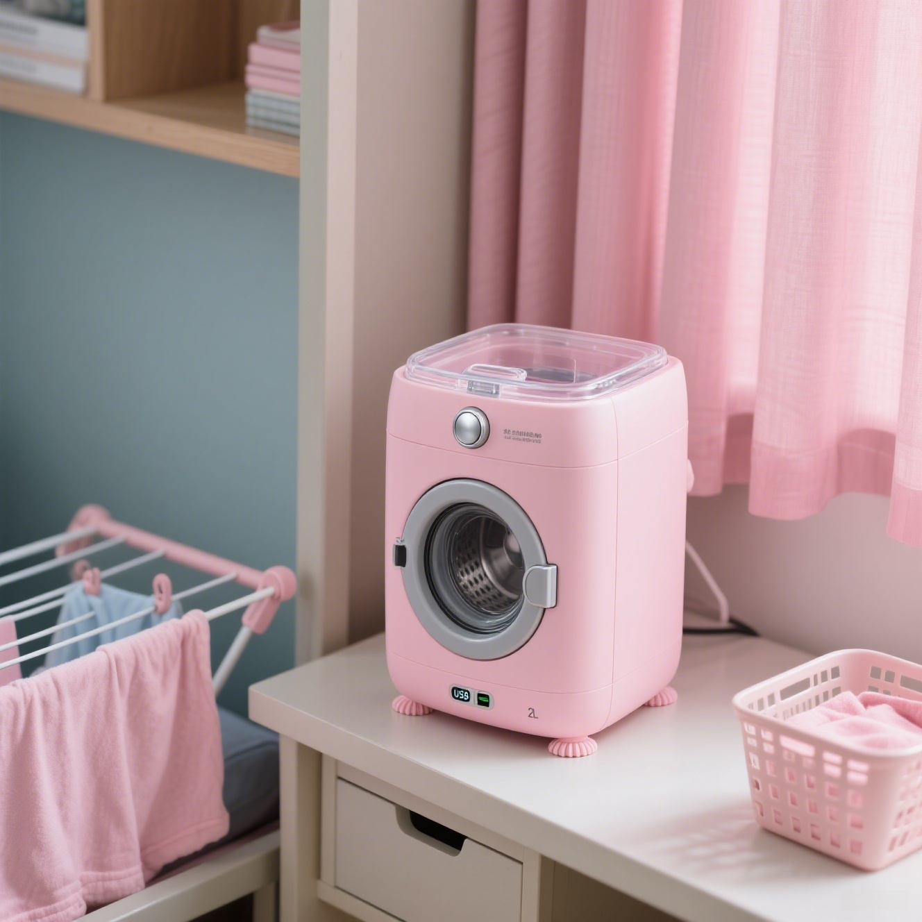 Kompaktní mini pračka s funkcí praní a sušení. Úspora místa, nízká spotřeba energie, snadné ovládání, vhodná do malých domácností a na cesty.